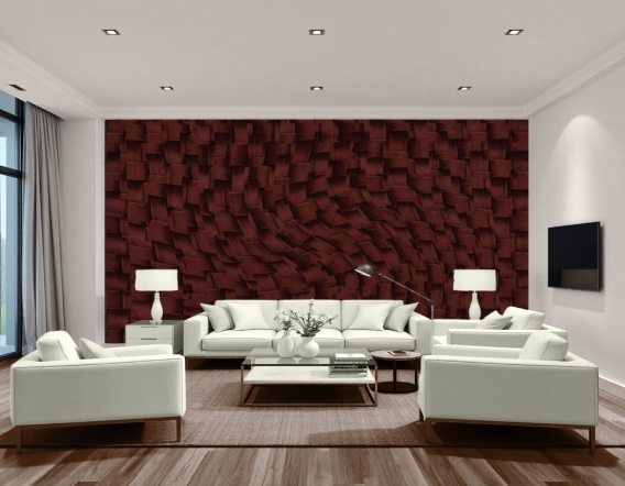 Wyjątkowa fototapeta 3D przedstawiająca głęboki, bordowy splot koszykowy o wyraźnej teksturze luksusowej tkaniny. To projekt, który łączy geometryczną precyzję plecionki z miękkością materiału typu velvet. Dzięki unikalnym zniekształceniom wzoru i grze świateł, fototapeta tworzy na ścianie efekt trójwymiarowej fali, która optycznie powiększa przestrzeń i nadaje jej nowoczesny, tekstylny charakter.