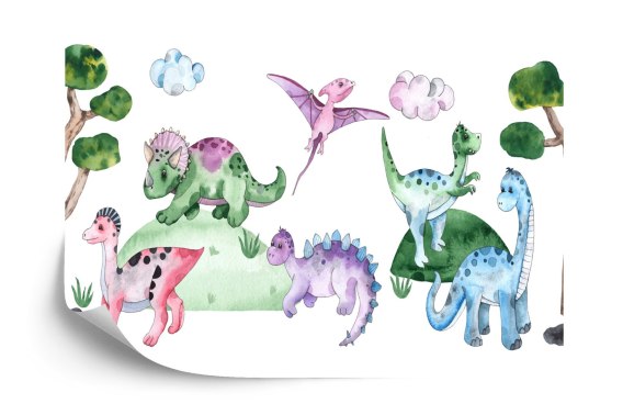 Fototapeta Pastelowe Dinozaury Na Polanie