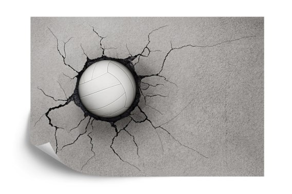 Fototapeta Piłka Siatkowa W Betonowej Ścianie