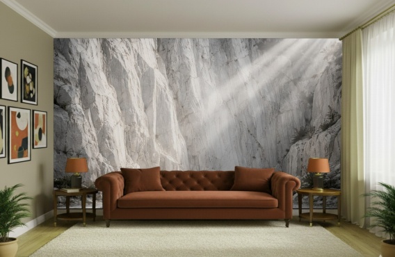 Grafika przedstawia monumentalny, wapienny kanion, przez który przedzierają się miękkie, naturalne promienie słońca. Minimalistyczna, jasnoszara kolorystyka sprawia, że wzór jest niezwykle uniwersalny i elegancki. Fototapeta ta doskonale sprawdzi się w salonie, sypialni czy biurze, gdzie optycznie otworzy przestrzeń i wprowadzi spokój natury. Dzięki neutralnej barwie idealnie komponuje się z meblami w stylu skandynawskim, industrialnym oraz nowoczesnym.