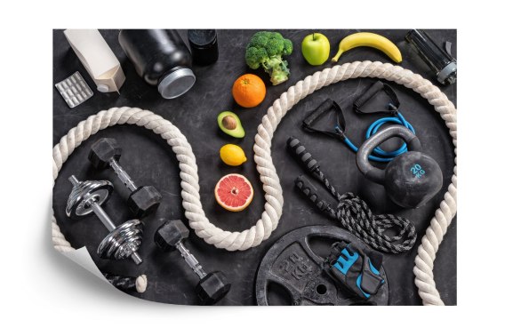 Fototapeta Sprzęt Sportowy Z Owocami I Warzywami