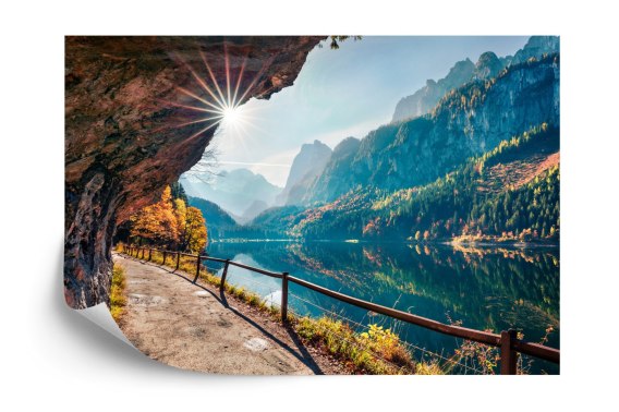 Fototapeta Sunny Autumn Scene Of Vorderer ( Gosausee ) Lake. Colorful Morning View Of Austrian Alps, Upper Austria, Europe. Beau