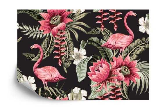 Fototapeta Tropikalne Kwiaty I Flamingi Vintage