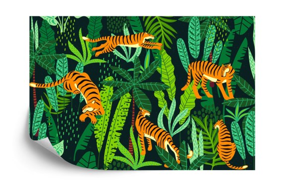 Fototapeta Tygrysy Z Dżungli W Stylu Retro