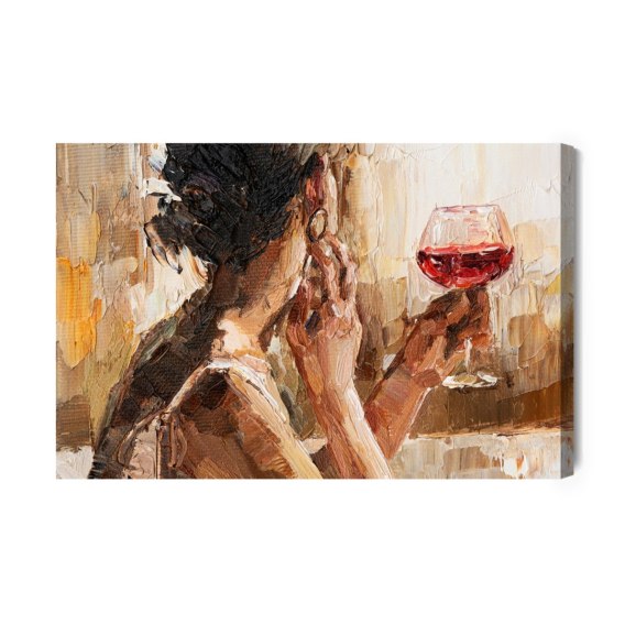 Obraz Na Płótnie Fragment Of Artwork Where Beautiful Attractive Young Woman Holding A Glass Of Wine. Oil Painting On Canvas.
