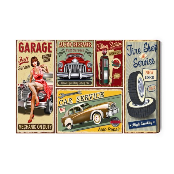 Obraz Na Płótnie Kolaż Starych Płyt Z Retro Samochodami