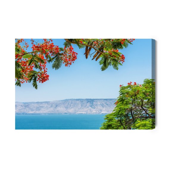 Obraz Na Płótnie Krajobraz Z Morzem I Drzewami