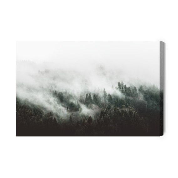 Obraz Na Płótnie Moody Forest Landscape With Fog And Mist