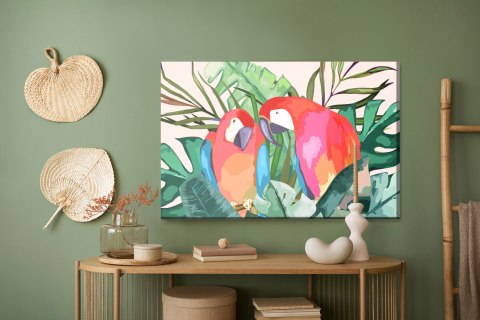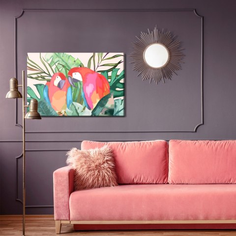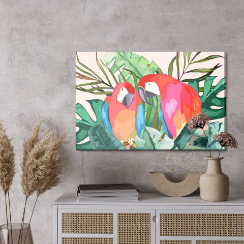 Obraz Na Płótnie Papugi I Liście Tropikalne