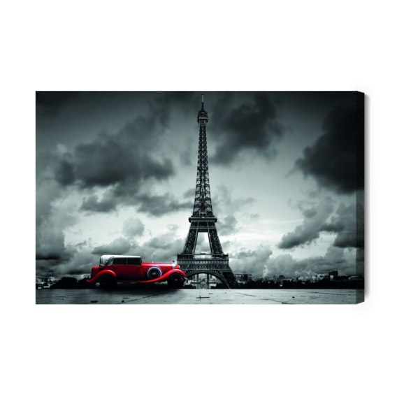 Obraz Na Płótnie Stary Samochód Na Tle Wieży Eiffla