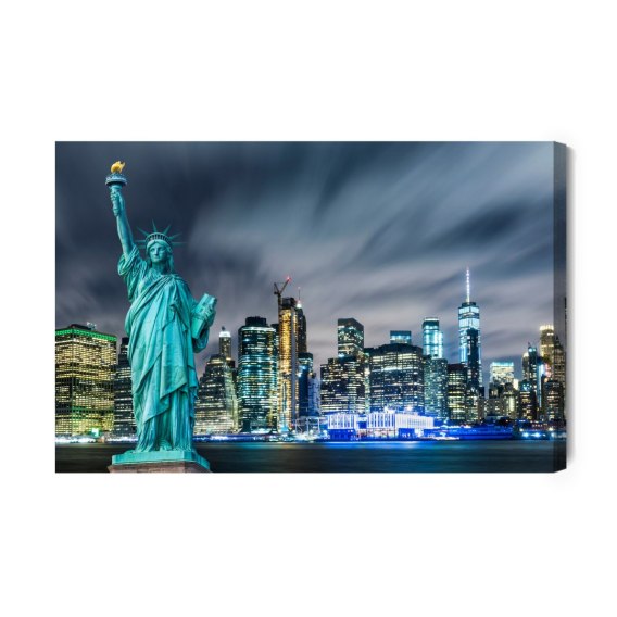 Obraz Na Płótnie Statua Wolności Na Tle Nowojorskich Drapaczy Chmur