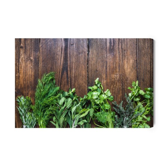 Obraz Na Płótnie Świeże Zioła Na Drewnie