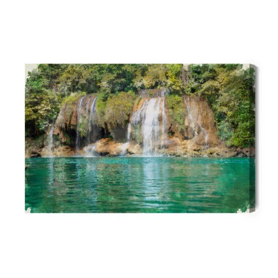 Obraz Na Płótnie Widok Na Wodospad Malowany Akwarelą