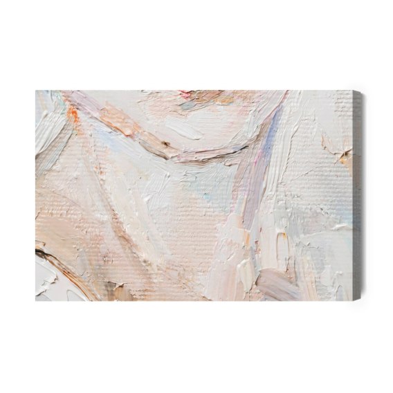 Obraz Na Płótnie Young Girl With Beautiful Mysterious Blue Eyes . Primary Colors: White, Brown, Grey, Pink.