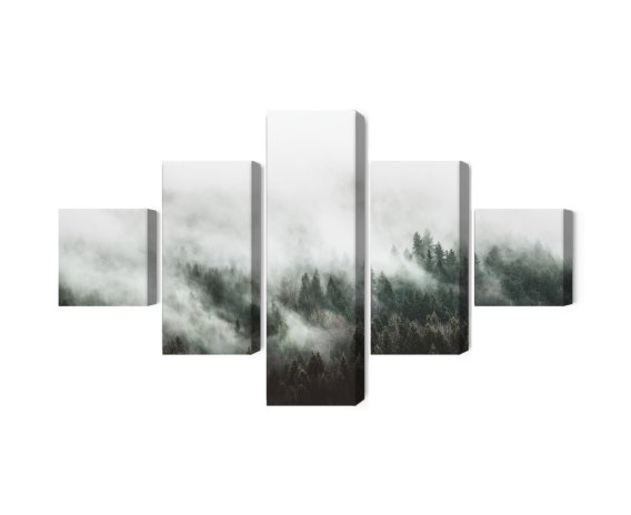 Obraz Wieloczęściowy 3D Mglisty Krajobraz Leśny