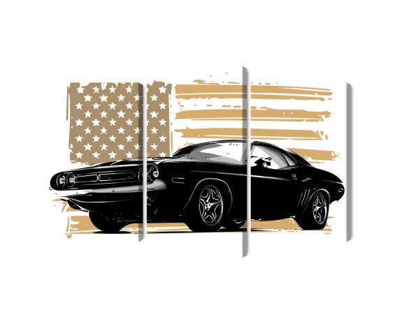 Obraz Wieloczęściowy Amerykański Muscle Car Z Flagą Usa W Tle