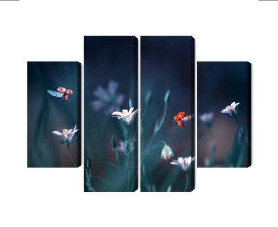 Obraz Wieloczęściowy Biedronki I Polne Kwiaty W Skali Makro