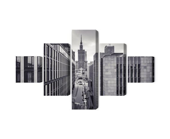 Obraz Wieloczęściowy Czarno-Biała Panorama Centrum Warszawy