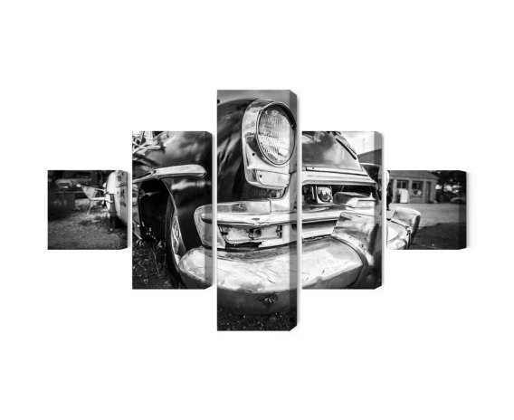 Obraz Wieloczęściowy Czarno-Biały Amerykański Samochód Retro