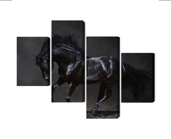 Obraz Wieloczęściowy Czarny Koń W Galopie