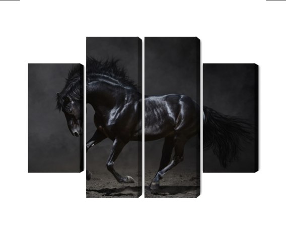 Obraz Wieloczęściowy Czarny Koń W Galopie