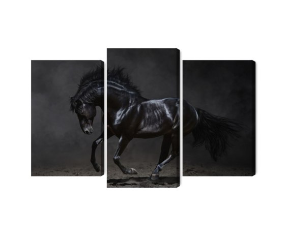 Obraz Wieloczęściowy Czarny Koń W Galopie