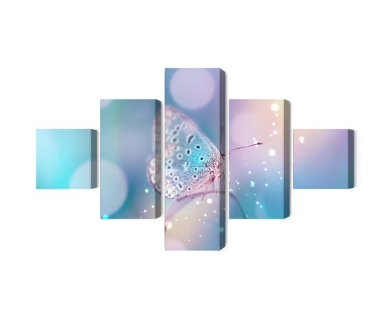 Obraz Wieloczęściowy Delikatny Motyl Na Źdźble Trawy W Skali Makro
