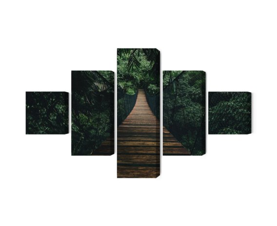 Obraz Wieloczęściowy Drewniany Most Wiszący W Lesie