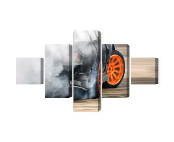 Obraz Wieloczęściowy Dryfujący Samochód W Kłębie Dymu