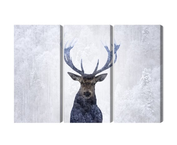 Obraz Wieloczęściowy Jeleń W Zimowym Lesie 3D