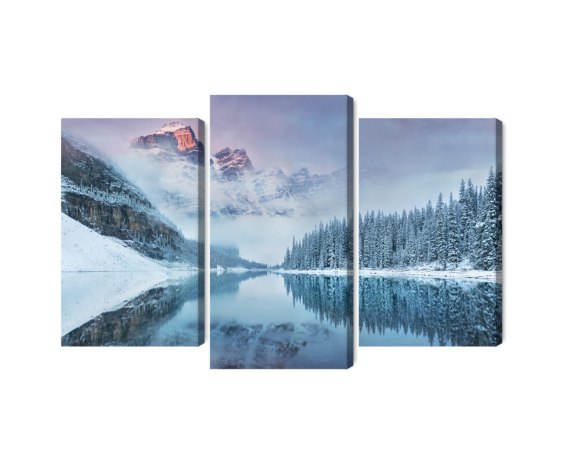 Obraz Wieloczęściowy Kanadyjskie Jezioro Morenowe W Zimowy Dzień
