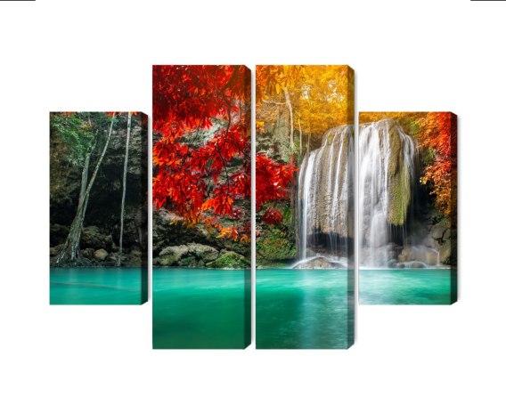 Obraz Wieloczęściowy Kaskada W Jesiennym Lesie