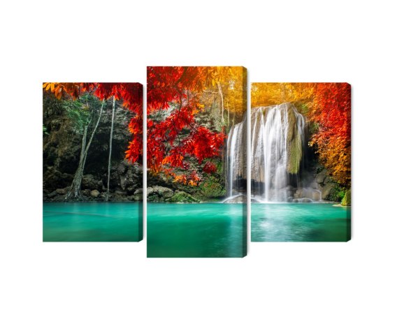 Obraz Wieloczęściowy Kaskada W Jesiennym Lesie