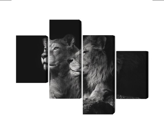 Obraz Wieloczęściowy Lew I Lwica Na Czarnym Tle