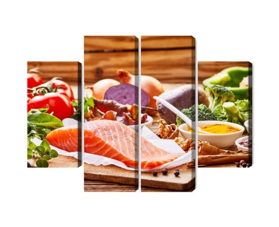 Obraz Wieloczęściowy Łosoś Wśród Warzyw