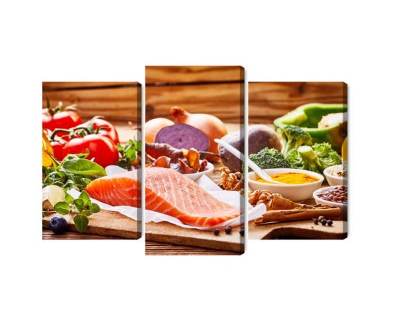 Obraz Wieloczęściowy Łosoś Wśród Warzyw