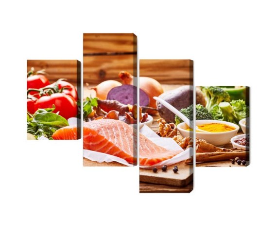 Obraz Wieloczęściowy Łosoś Wśród Warzyw