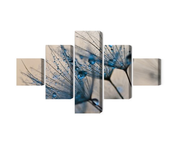 Obraz Wieloczęściowy Mlecze Z Kropelkami Wody W Skali Makro