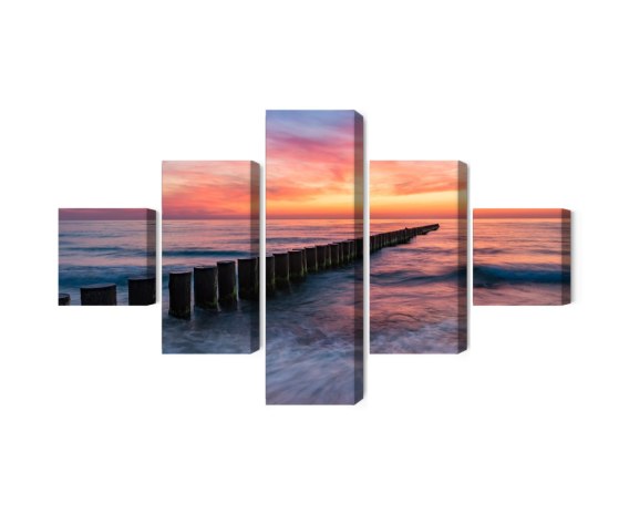 Obraz Wieloczęściowy Morze Bałtyckie Z Drewnianymi Falochronami