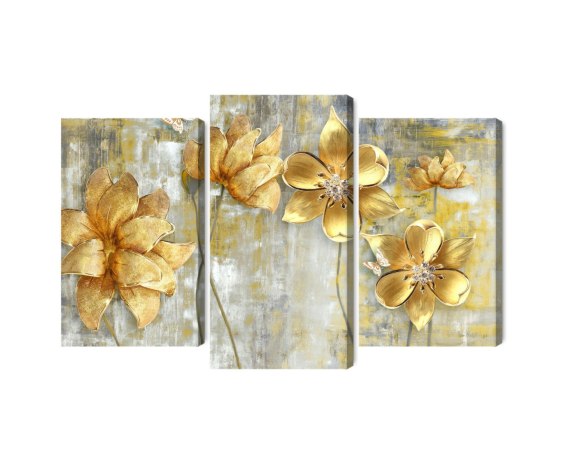 Obraz Wieloczęściowy Ozdobne Kwiaty W Odcieniach Beżu
