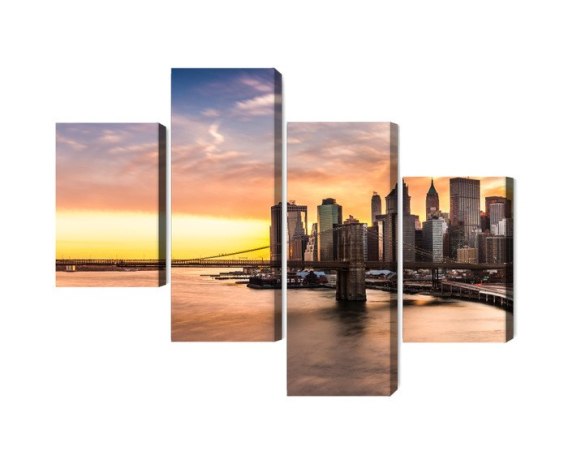 Obraz Wieloczęściowy Panorama Mostu Brooklińskiego O Zachodzie Słońca