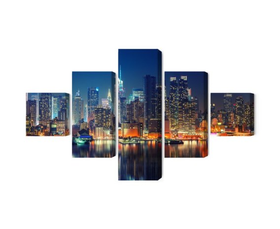 Obraz Wieloczęściowy Panoramiczny Widok Na Manhattan Nocą
