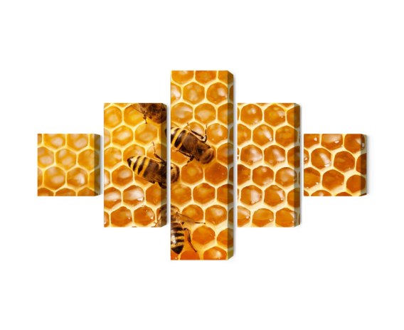Obraz Wieloczęściowy Pszczoły Na Plastrze Miodu