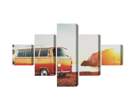 Obraz Wieloczęściowy Retro Samochód Na Plaży