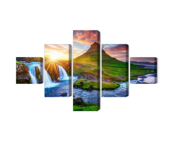 Obraz Wieloczęściowy Widok Na Wodospad Kirkjufellsfoss