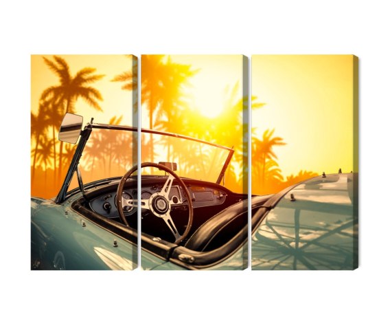 Obraz Wieloczęściowy Widok Z Samochodu O Zachodzie Słońca W Stylu Retro