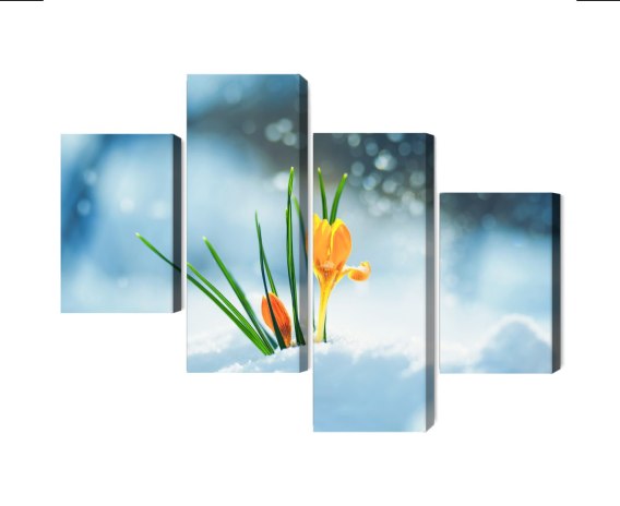 Obraz Wieloczęściowy Żółte Krokusy Przebijające Się Przez Śnieg