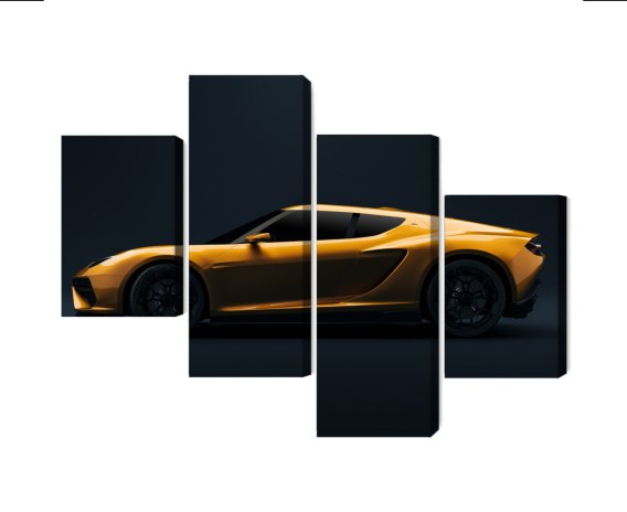 Obraz Wieloczęściowy Żółty Samochód Sportowy 3D