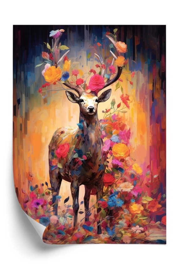 • Plakat Animowany Jeleń Cały W Kwiatach