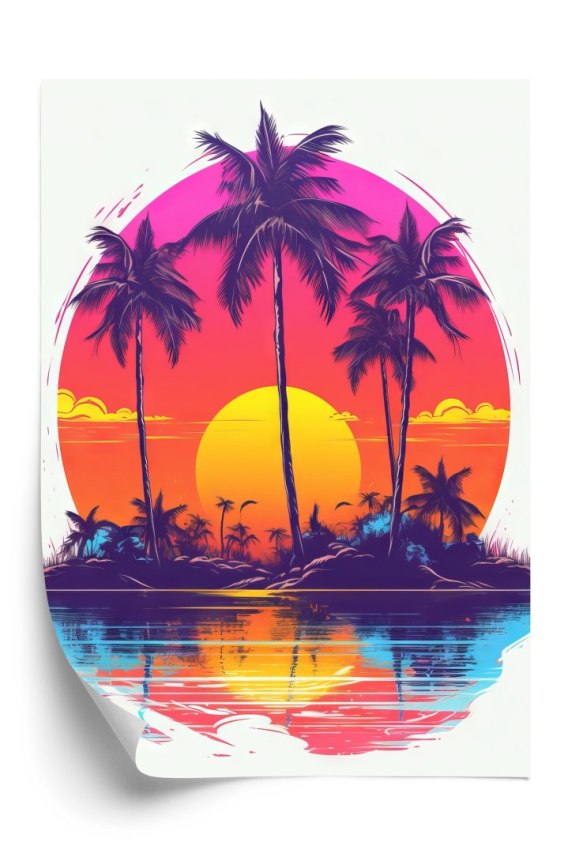 • Plakat Bezludna Wyspa Palmy I Zachodzące Słońce